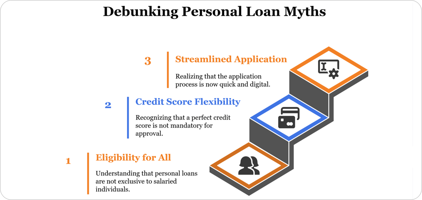 Lenders today assess the stability and consistency of your income rather than just where it comes from. So, if you run a small business with steady profits or freelance with recurring contracts, you may still qualify. Unfortunately, since many people believe in the personal loan myth that it is only for salaried applicants, they are not aware of how flexible the borrowing can be.